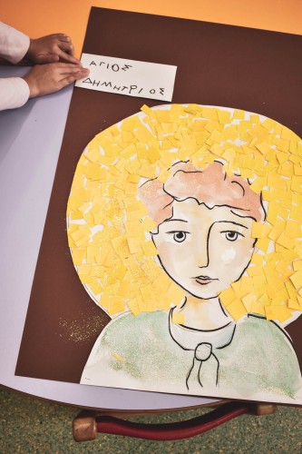 27 Οκτωβρίου 2020Την Τρίτη 27 Οκτωβρίου για τους μαθητές της 10μηνης και 11μηνης φοίτησης του Παιδικού Σταθμού «Πρότυπα 2-4», του Νηπιαγωγείου και του Δημοτικού Σχολείου μας λειτούργησε το πρόγραμμα δημιουργικής απασχόλησης με ποικίλες δραστηριότητες στις τάξεις και στην αυλή μας. Τα νηπιάκια μας, με αφορμή τον εορτασμό του πολιούχου της Θεσσαλονίκης, χωρίστηκαν σε ομάδες και συνεργάστηκαν για να δημιουργήσουν ένα ιδιαίτερο πολύχρωμο ψηφιδωτό του Αγίου Δημητρίου, το νέο στολίδι της τάξης.