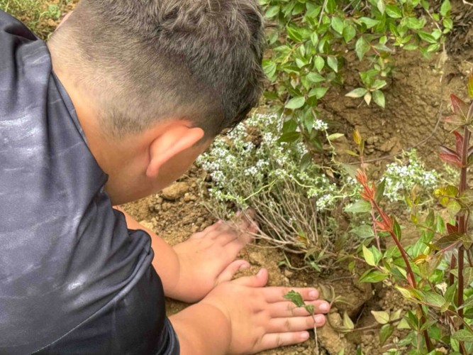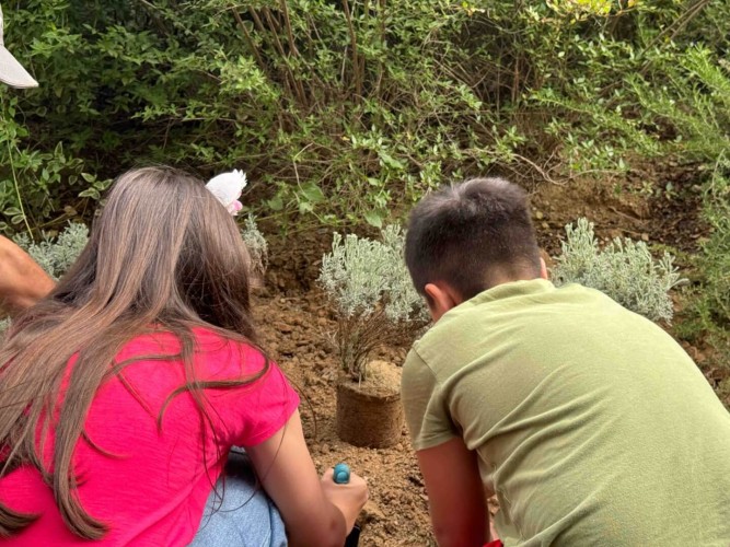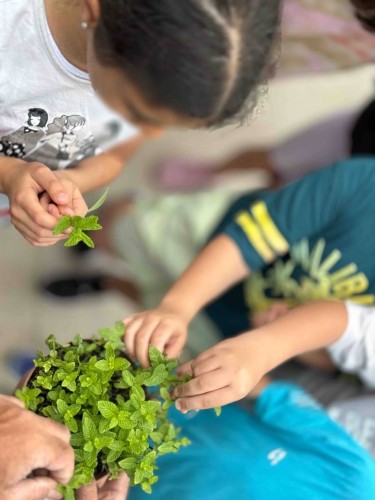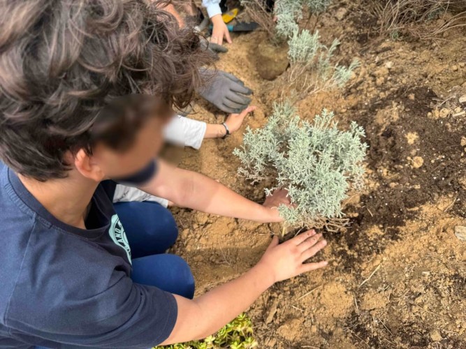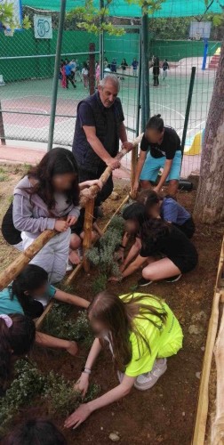 Επιπλέον οι μεγαλύτεροι μαθητές μας, των Δ΄, Ε΄ και ΣΤ΄ τάξεων, στο πλαίσιο του προγράμματος φύτευσης, εμπλούτισαν τον βοτανικό μας κήπο. Αρχικά, άγγιξαν και μύρισαν τα αρωματικά φυτά, έμαθαν πληροφορίες για το καθένα από αυτά και αναφέρθηκαν στις ιδιότητές τους. Έπειτα, με την καθοδήγηση του γεωπόνου ξεκίνησαν την προετοιμασία του εδάφους. Χωρισμένα σε ομάδες φύτεψαν αρωματικά φυτά και βότανα της ελληνικής γης, όπως θυμάρι, ρίγανη, δυόσμο, λεβάντα, μέντα, φασκόμηλο, τσάι του βουνού, λουίζα κ.ά. και ανέλαβαν να τα μεγαλώσουν. Τώρα μπορούν να φτιάξουν τα δικά τους αφεψήματα.