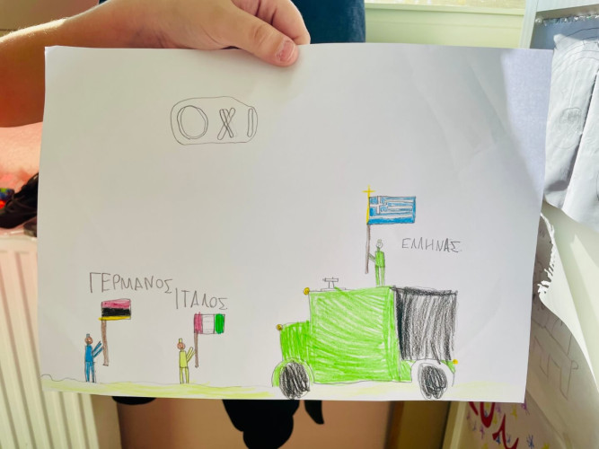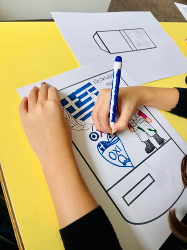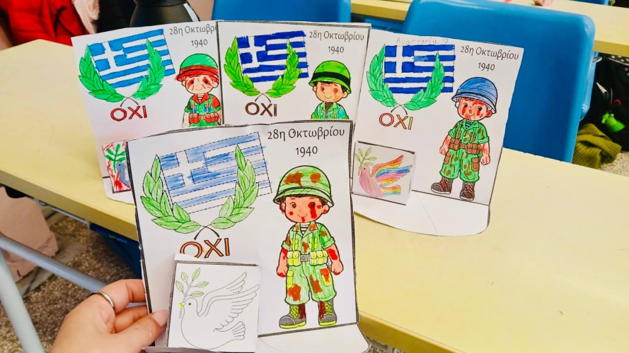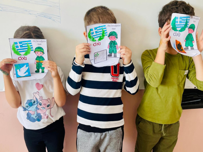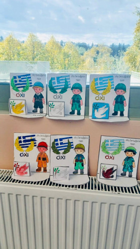 24 Οκτωβρίου 2025Στο πλαίσιο του εορτασμού της 28ης Οκτωβρίου, οι μαθητές της Β΄ τάξης έκαναν μια αναδρομή στην ιστορία και γνώρισαν τα γεγονότα που διαδραματίστηκαν το 1940. Παρακολούθησαν τη σχολική γιορτή που παρουσίασαν οι μαθητές της Ε΄ τάξης, διάβασαν τα σχετικά κείμενα από το Ανθολόγιό τους, έμαθαν τι συμβολίζουν τα χρώματα της ελληνικής σημαίας και έφτιαξαν σε τρισδιάστατη κατασκευή ένα περιστέρι που φέρει κλαδί ελιάς.