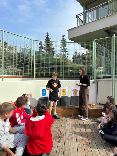 11 Μαρτίου 2026Με μεγάλη χαρά οι μαθητές της Ε΄ και Στ΄ τάξης στο πλαίσιο του μαθήματος των Γαλλικών υποδέχθηκαν στο Σχολείο μας τις εκδόσεις Trait d'Union με στόχο την ενημέρωση για το περιβάλλον και την ανακύκλωση. Τα παιδιά είχαν την ευκαιρία να γνωρίσουν το σύστημα ανακύκλωσης στη Γαλλία, να μάθουν για τους διαφορετικούς κάδους ανακύκλωσης και τα υλικά που τοποθετούνται σε καθέναν από αυτούς, ενώ παράλληλα να εμπλουτίσουν το λεξιλόγιό τους στα γαλλικά μέσα από βιωματικές και διαδραστικές δραστηριότητες. Τα Πρότυπα Εκπαιδευτήρια Θεσσαλονίκης ως πιστοποιημένο αειφόρο Σχολείο προωθεί δράσεις με σκοπό την καλλιέργεια της περιβαλλοντικής ευαισθητοποίησης και την υιοθέτηση υπεύθυνης στάσης ζωής. Μέσα από τη διδασκαλία των ξένων γλωσσών δίνεται η δυνατότητα στους μαθητές να γίνουν ενεργοί και συνειδητοποιημένοι πολίτες του κόσμου.