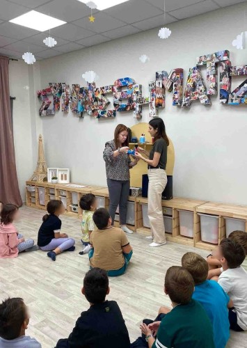 17 Οκτωβρίου 2024Φόβος, θυμός, λύπη είναι κάποια από τα αρνητικά συναισθήματα που μπορεί να βιώσουμε στην καθημερινότητά μας. Οι μαθητές μας της Β΄ τάξης μυήθηκαν σε πολλές τεχνικές ηρεμίας με σκοπό να μάθουν να τα διαχειρίζονται, κατά τη διάρκεια της επίσκεψής τους στο κέντρο συναισθηματικής ανάπτυξης «Συναισθηματίζειν». Στο πλαίσιο του Εργαστηρίου Δεξιοτήτων με τίτλο «Μαθαίνω να αναγνωρίζω και να διαχειρίζομαι τα συναισθήματά μου» τα παιδιά μας παρακολούθησαν το εκπαιδευτικό εργαστήριο με τίτλο «My emotion project». Μέσα από διάφορα παιχνίδια αναγνώρισης συναισθημάτων, με κάρτες παντομίμας και μελωδίες, έγιναν «χαρούμενα», «λυπημένα», «προβληματισμένα», «θυμωμένα», «κουρασμένα». Αυτό που είχε ιδιαίτερο ενδιαφέρον ήταν όταν ήρθε η στιγμή που το κάθε παιδί παρατήρησε, τόσο στον εαυτό του όσο και στους συμμαθητές του, τις διαφορετικές κινήσεις και εκφράσεις που «υιοθετούν» σύμφωνα με το συναίσθημά τους. Επιστρέφοντας στην τάξη οι μαθητές μας δημιούργησαν την «παλέτα» και «παραθυράκια» των συναισθημάτων και παρουσίασαν τη δική τους οπτική για το πως τα φαντάζονται.