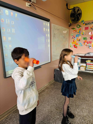 20 Οκτωβρίου 2025Τα μάτια της καρδιάς πάντα βλέπουν πιο καθαρά και αναγνωρίζουν τα βαθιά συναισθήματα των αγαπημένων μας. Οι μαθητές μας της Β΄ τάξης, έχοντας ως σκοπό να παρατηρήσουν πώς αισθάνονται οι συμμαθητές τους, έφτιαξαν το δικό τους «τηλεσκόπιο της καρδιάς». Τι βλέπουμε όμως με αυτό; Ένα παιδί είναι μόνο του στο διάλειμμα. Τι κάνουμε; Τα παιδιά μας με ενσυναίσθηση απάντησαν ότι «Χαρίζουμε ένα χαμόγελο» και «Προσφέρουμε την παρέας μας», κατανοώντας πως με απλές πράξεις ομορφαίνουμε την ημέρα κάποιου. Μέσα από εικόνες και μικρά σενάρια της καθημερινότητας έμαθαν να αναγνωρίζουν πώς νιώθει ο άλλος και να προτείνουν ενέργειες καλοσύνης. Παρατήρηση, κατανόηση, υποστήριξη είναι οι έννοιες που καλλιεργούνται και ανθίζουν με μικρά βήματα.