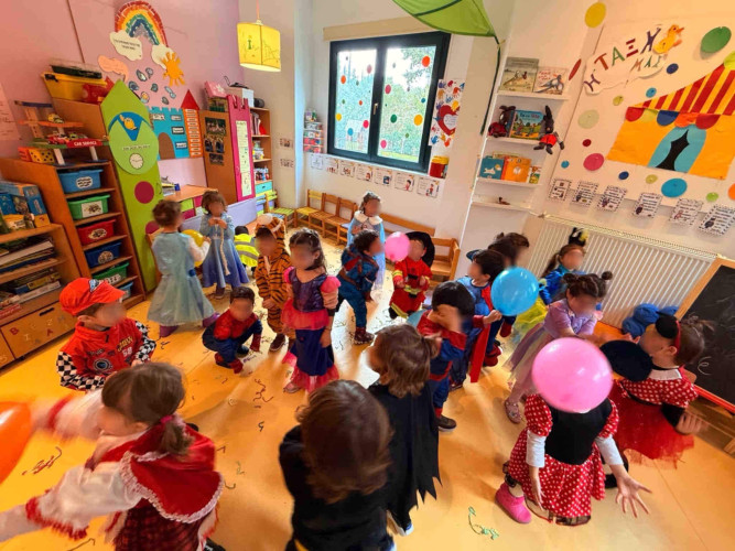 20 Φεβρουαρίου 2025Μουσική, χαμόγελα και… λαχταριστές μυρωδιές γέμισε το Σχολείο μας την Πέμπτη 20 Φεβρουαρίου. Οι μαθητές μας του Παιδικού Σταθμού «Πρότυπα 2-4», του Νηπιαγωγείου και του Δημοτικού, ως σωστοί καρναβαλιστές, γιόρτασαν την Τσικνοπέμπτη και τήρησαν το έθιμο διασκεδάζοντας στον ρυθμό της Αποκριάς. Απόλαυσαν την εορταστική ατμόσφαιρα και γεύτηκαν τις νοστιμιές που ψήθηκαν στο υπαίθριο πάρτι που στήθηκε. Τα παιδιά φόρεσαν πρωτότυπες αποκριάτικες στολές και μεταμφιέστηκαν σε μονόκερους, μάγισσες, δράκους και με κεφάτη διάθεση χόρεψαν, τραγούδησαν και έπαιξαν παραδοσιακά αποκριάτικα παιχνίδια. Η αυλή μας «πλημμύρισε» με χρώματα και φαντασία. Περάσαμε υπέροχα!
