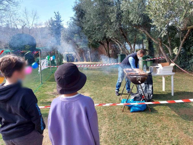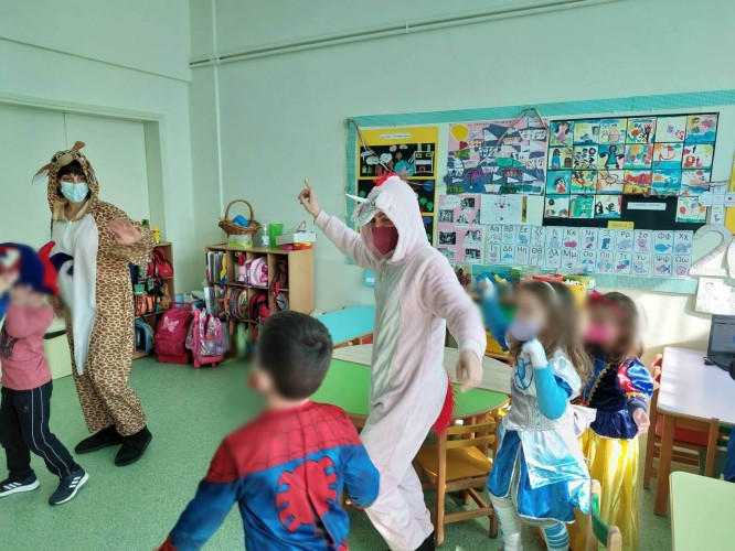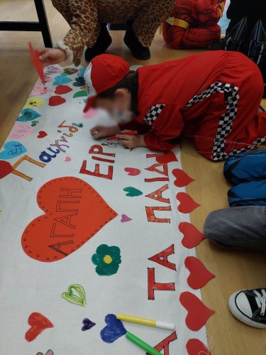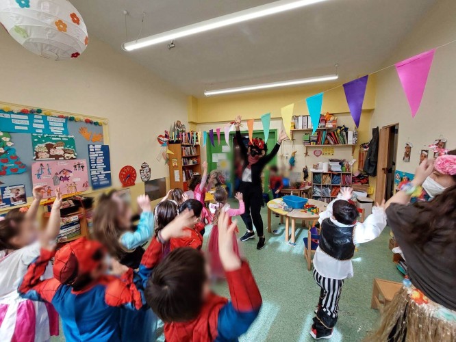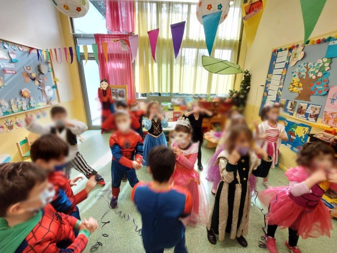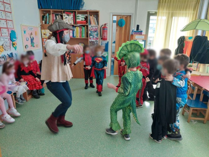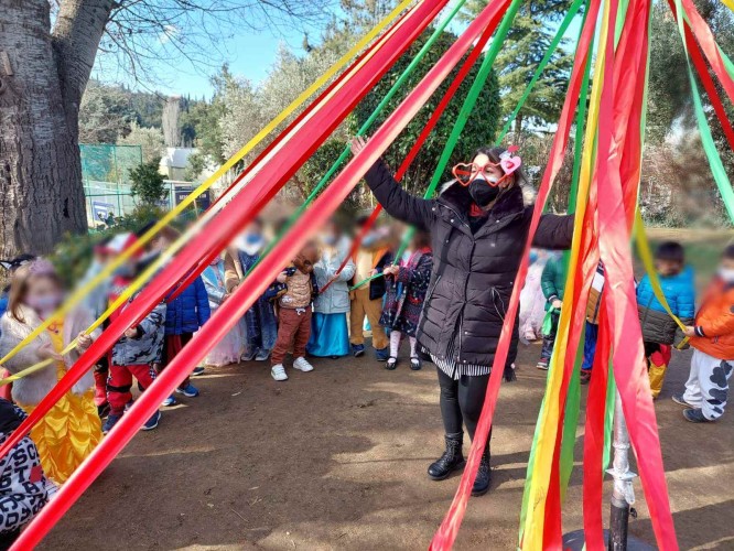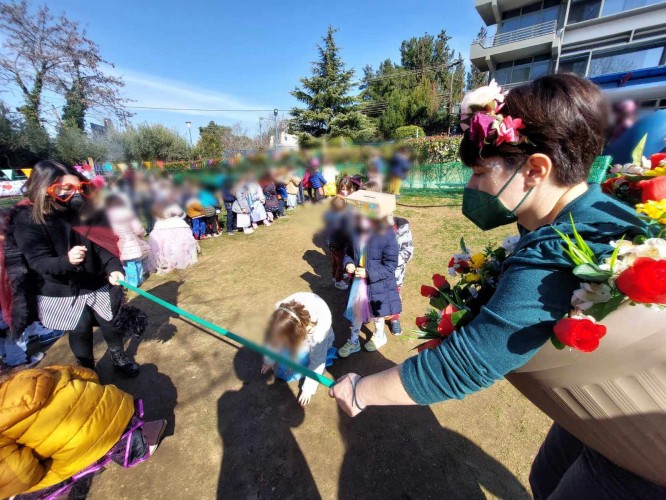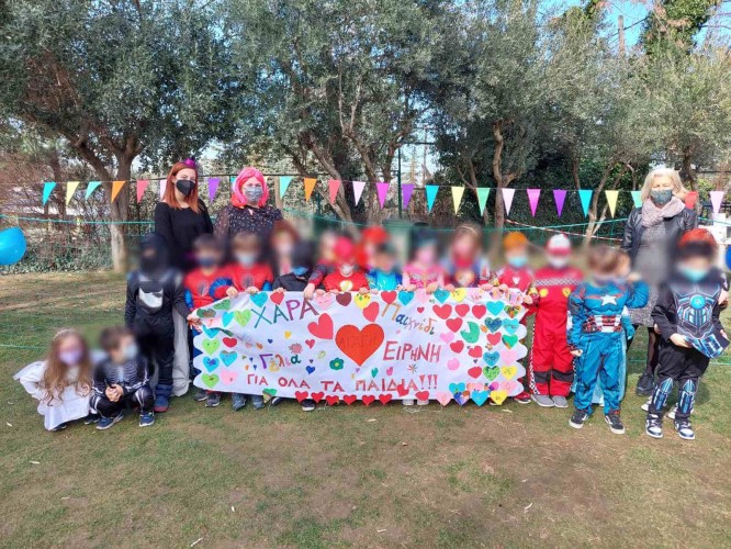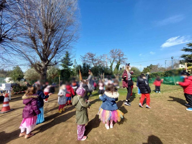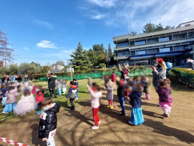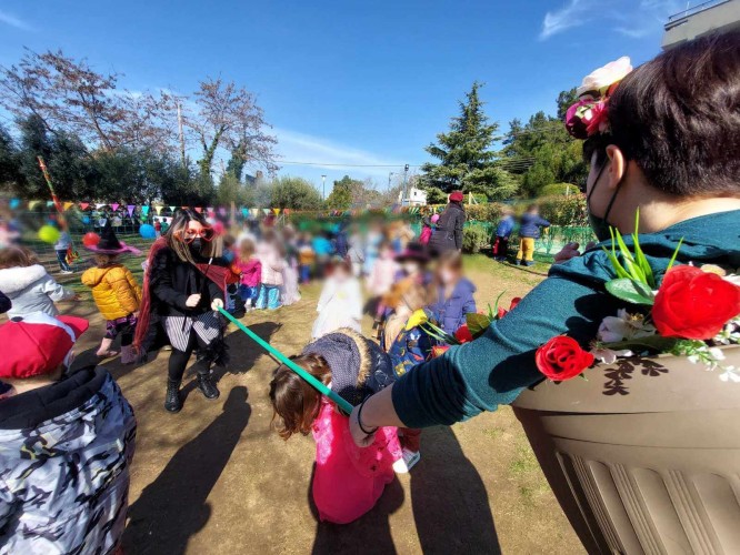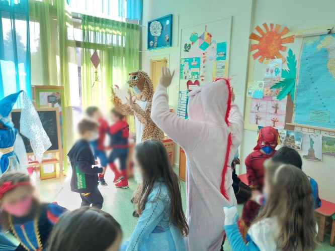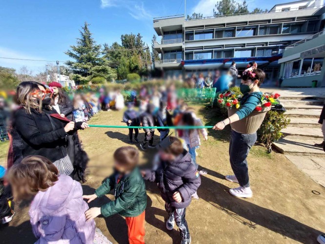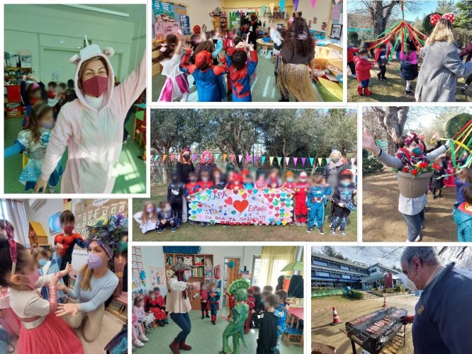 25 Φεβρουαρίου 2022Η αυλή του Σχολείου μας μύρισε τσίκνα από τα σουβλάκια που ψήσαμε, ενώ παιδικές φωνούλες και αποκριάτικα τραγούδια γέμισαν τον χώρο! Ήταν η γιορτή του Νηπιαγωγείο μας και τα μικρά μας με τις δασκάλες τους που μας έκαναν να χαμογελάσουμε και έδωσαν τον αποκριάτικο ρυθμό. Τα παιδιά μας χόρεψαν στις τάξεις τους και ύστερα, ανά τμήμα βγήκαν στην αυλή μας, όπου είχαν στηθεί ψησταριές από νωρίς το πρωί. Και επειδή η μυρωδιά πήγε και στο Δημοτικό μας, και όλοι οι μαθητές μας του Δημοτικού κεράστηκαν σε ατομική συσκευασία από ένα σουβλάκι για το καλό! Τα μικρά μας στην αυλή έπαιξαν λίμπο και φυσικά, πιστά στα έθιμά μας γύρισαν το γαϊτανάκι. Και επειδή η χαρά και η αγάπη πρέπει να μοιράζονται, έφτιαξαν με τις νηπιαγωγούς τους ένα πανό με το οποίο εύχονται χαρά και αγάπη για όλα τα παιδάκια του κόσμου!