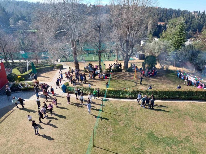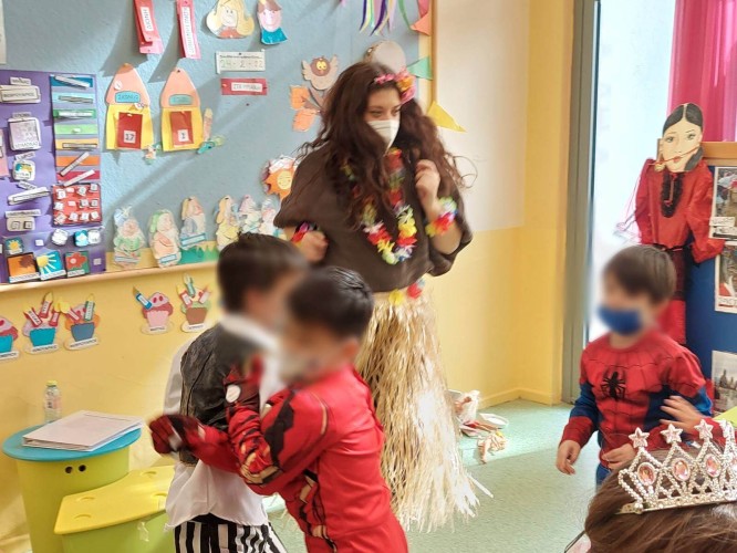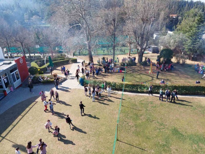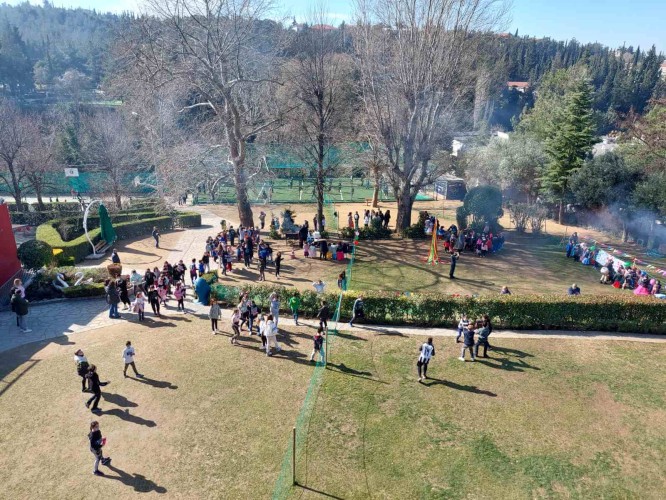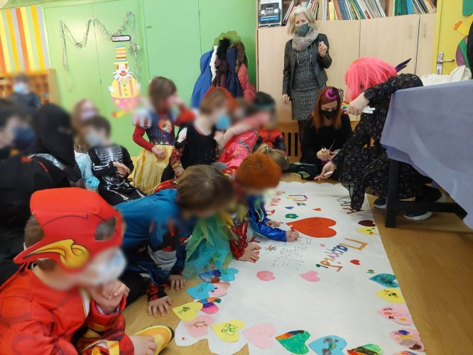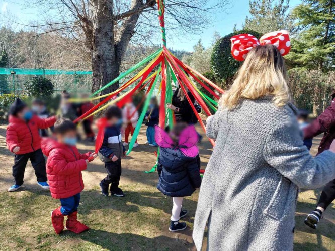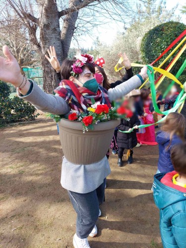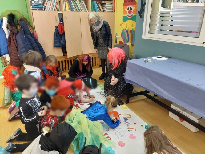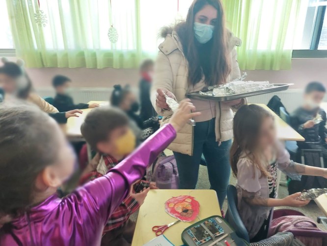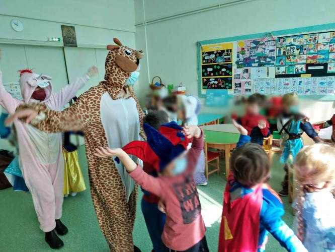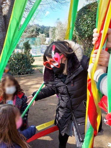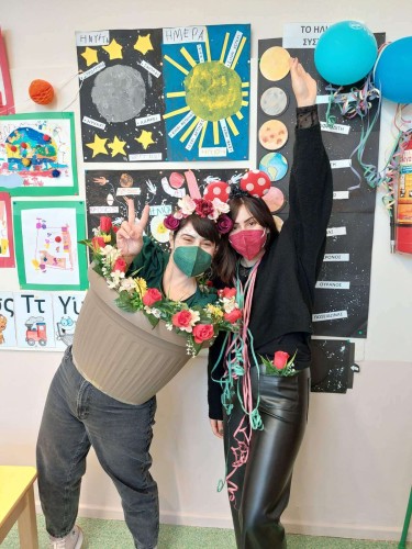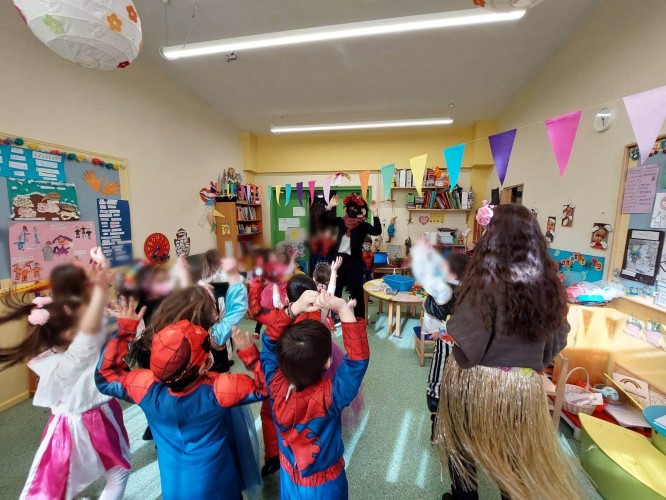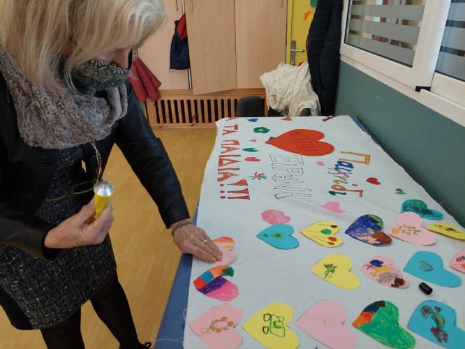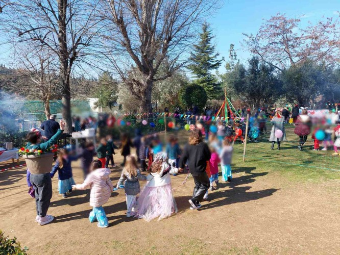 25 Φεβρουαρίου 2022Η αυλή του Σχολείου μας μύρισε τσίκνα από τα σουβλάκια που ψήσαμε, ενώ παιδικές φωνούλες και αποκριάτικα τραγούδια γέμισαν τον χώρο! Ήταν η γιορτή του Νηπιαγωγείο μας και τα μικρά μας με τις δασκάλες τους που μας έκαναν να χαμογελάσουμε και έδωσαν τον αποκριάτικο ρυθμό. Τα παιδιά μας χόρεψαν στις τάξεις τους και ύστερα, ανά τμήμα βγήκαν στην αυλή μας, όπου είχαν στηθεί ψησταριές από νωρίς το πρωί. Και επειδή η μυρωδιά πήγε και στο Δημοτικό μας, και όλοι οι μαθητές μας του Δημοτικού κεράστηκαν σε ατομική συσκευασία από ένα σουβλάκι για το καλό! Τα μικρά μας στην αυλή έπαιξαν λίμπο και φυσικά, πιστά στα έθιμά μας γύρισαν το γαϊτανάκι. Και επειδή η χαρά και η αγάπη πρέπει να μοιράζονται, έφτιαξαν με τις νηπιαγωγούς τους ένα πανό με το οποίο εύχονται χαρά και αγάπη για όλα τα παιδάκια του κόσμου!