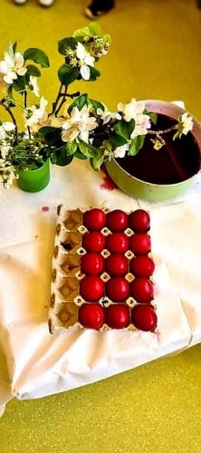 - Βγήκαν στην καταπράσινη αυλή και έβαψαν κόκκινα αυγουλάκια.