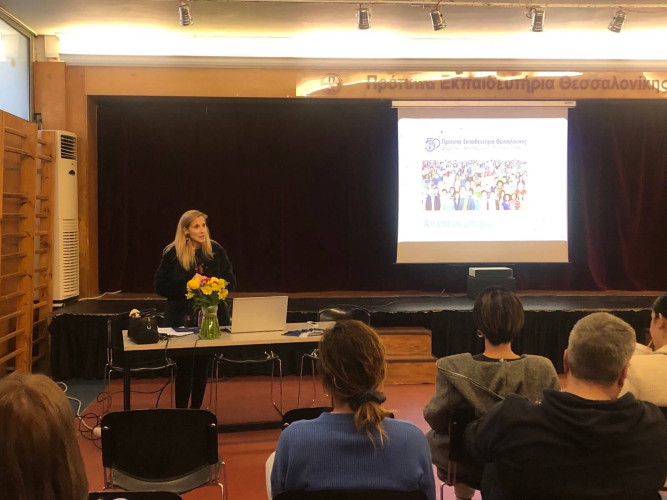 Τέλος, στις 31 Μαρτίου η Παιδαγωγός-Εικαστικός των Προτύπων Εκπαιδευτηρίων Θεσσαλονίκης, κ. Ελένη Πάλλη, πραγματοποίησε το βιωματικό εργαστήρι «Επικοινωνία: Πώς σχετίζομαι με τους ανθρώπους-Εγώ και οι άλλοι» με την ενεργή συμμετοχή όλων των συμμετεχόντων.