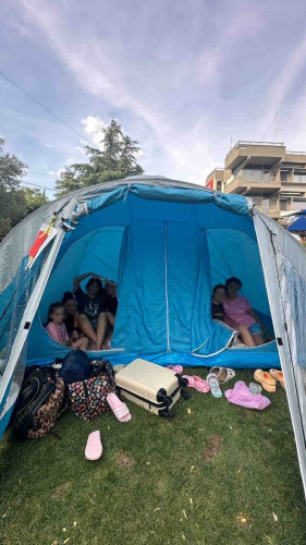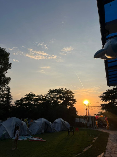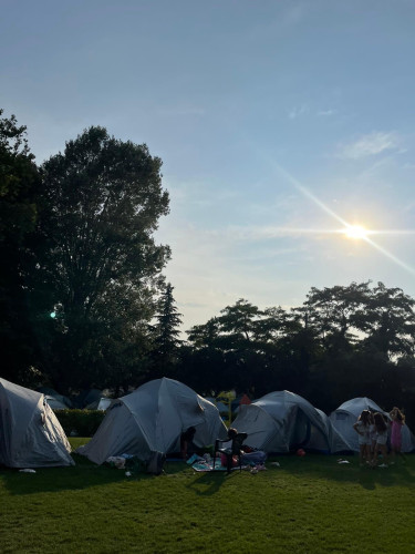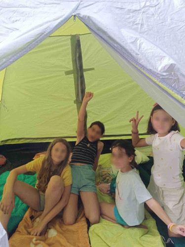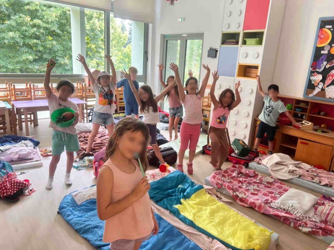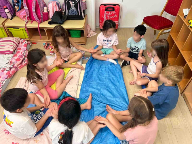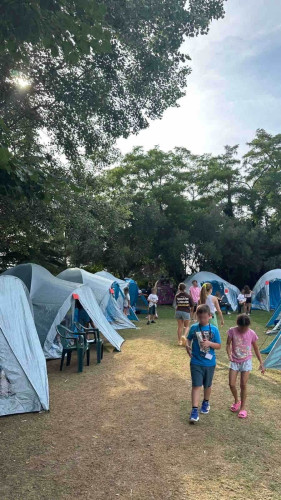 20 Ιουνίου 2025Οι σκηνές στήθηκαν, τα sleeping bags στρώθηκαν και το πολυαναμενόμενο sleepover της χρονιάς πραγματοποιήθηκε στο Σχολείο μας. Το βράδυ της Παρασκευής τα φώτα έσβησαν σε μια εντελώς διαφορετική ατμόσφαιρα τα παιδιά μας του English Summer Camp έζησαν μια ξεχωριστή εμπειρία. Η καταπράσινη αυλή μας διαμορφώθηκε κατάλληλα και οι μικροί κατασκηνωτές εφοδιασμένοι με τα απαραίτητα απόλαυσαν την αξέχαστη βραδιά. Μετά την τακτοποίηση και τη μεσημεριανή ανάπαυση τα παιδιά είδαν ταινία, συμμετείχαν σε υπαίθριες δραστηριότητες, πήραν μέρος σε μουσικοκινητικά παιχνίδια και γεύτηκαν τις νοστιμιές από το λαχταριστό barbecue. Μαξιλάρες, φωτάκια και μουσική έκαναν το σκηνικό ακόμα πιο ειδυλλιακό και έφτασε η ώρα του ύπνου. Με ψιθύρους, γέλια, ιστορίες και τους ήχους της φύσης είπαμε… καληνύχτα.