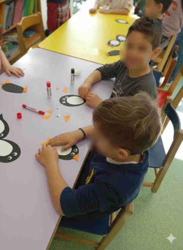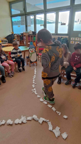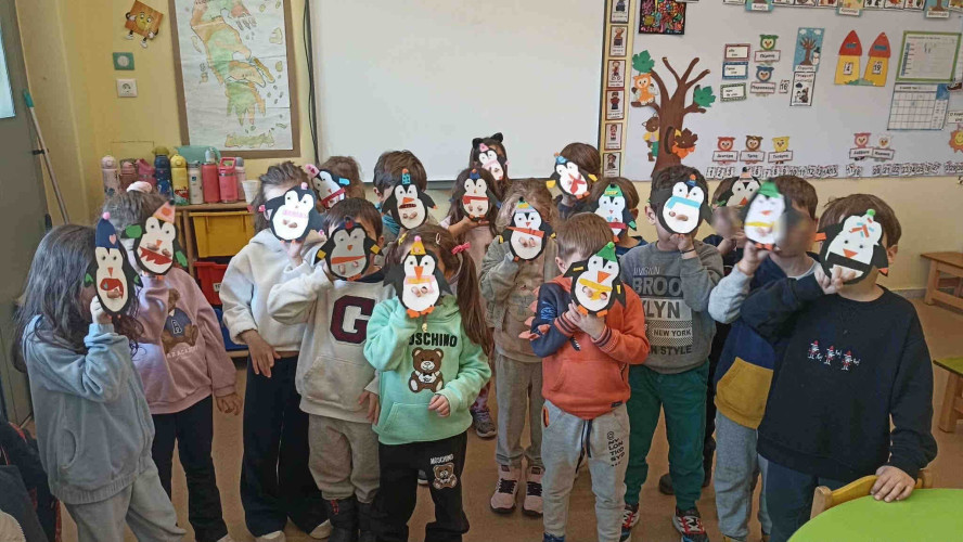 27 Ιανουαρίου 2026Τα νηπιάκια μας επιστρέφοντας στο Σχολείο από τις διακοπές των Χριστουγέννων ετοιμάστηκαν για τις πιο συναρπαστικές «Χιονισμένες διαδρομές». Γυρνώντας την υδρόγειο σφαίρα εντόπισαν τους δύο πόλους που βρίσκονται στην Αρκτική και στην Ανταρκτική αντίστοιχα και έμαθαν για τα έμβια όντα που ζουν σε αυτές τις περιοχές. Δημιούργησαν ομαδικά εικαστικά έργα με θέμα το βόρειο Σέλας, κατασκεύασαν τη δική τους πρωτότυπη κούκλα-πιγκουίνο χρησιμοποιώντας πολύχρωμα χαρτόνια και εκφράστηκαν ελεύθερα αναπαριστώντας με παντομίμα πολικά ζώα. Αφού, πειραματίστηκαν με τις ιδιότητες του πάγου συζήτησαν για το φαινόμενο του θερμοκηπίου, ενημερώθηκαν για τις επιπτώσεις που προκαλεί στον πλανήτη και αναρωτήθηκαν πώς μπορεί ο άνθρωπος να βοηθήσει στη λύση του προβλήματος. Βιωματικά ανέπτυξαν την περιβαλλοντική τους συνείδηση και καλλιέργησαν την κριτική τους σκέψη.