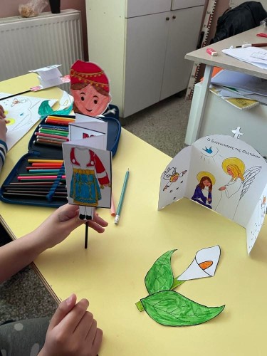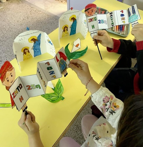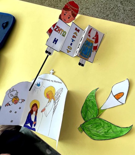 28 Μαρτίου 2022Τα παιδιά μας της Α’ Τάξης τίμησαν και αυτά με τη σειρά τους την ελληνική επανάσταση, αλλά και τον Ευαγγελισμό της Θεοτόκου. Έτσι, δημιούργησαν κολάζ με τους ήρωες και κατασκεύασαν τις δικές τους κάρτες που απεικόνιζαν τη συνάντηση της Παναγίας με τον Αρχάγγελο Γαβριήλ. Οι μαθητές μας εύχονται «Χρόνια πολλά»!