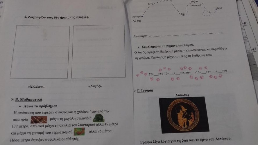 Στην έναρξη του προγράμματος και στο θεωρητικό πλαίσιο πραγματοποίησαν μια διαθεματική προσέγγιση του μύθου «Ο λαγός και η χελώνα» μέσω της Γλώσσας, των Μαθηματικών, της Ιστορίας αλλά και της Μελέτης περιβάλλοντος. Ξαφνικά ο μύθος πήρε μια διαφορετική διάσταση στα μάτια τους καθώς πέραν του ότι τους δίδαξε να είναι εργατικοί και να μην επαναπαύονται, έλυσαν προβλήματα μαθηματικών και ανακάλυψαν ιστορικά στοιχεία για τον Αίσωπο και τη δημοκρατία. Ολοκληρώνοντας "έτρεξαν" τον χάρτη της Ελλάδος ακολουθώντας τον λαγό και τη χελώνα στο φιλικό τους ταξίδι.