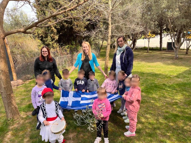 23 Μαρτίου 2024Τα περιστέρια, σύμβολα ειρήνης, είναι αγαπημένο θέμα του ζωγράφου Α. Φασιανού. Την Παρασκευή 22 Μαρτίου τα παιδιά μας του Παιδικού Σταθμού «Πρότυπα 2-4» παρατήρησαν πίνακες του καλλιτέχνη κι έπειτα φιλοτέχνησαν τα δικά τους λευκά περιστέρια σε μπλε φόντο. Στη συνέχεια, παρέλασαν στην καταπράσινη αυλή μας, τιμώντας την επέτειο της 25ης Μαρτίου με τον δικό τους μοναδικό τρόπο.